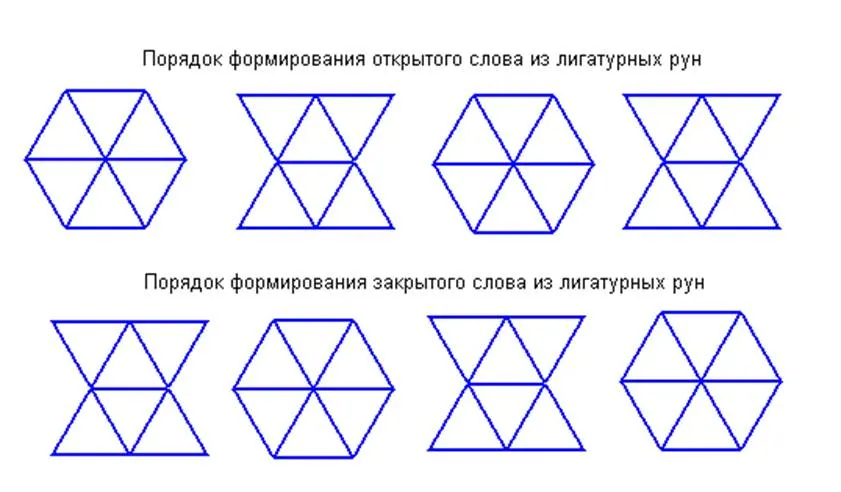Таблица лигатурных рун, построенных в открытой структуре – Солнечные руны