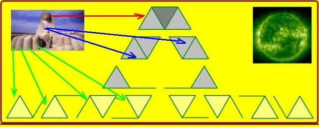 Матрица разделяется на два ромба, ромбы на руны пояснично-кресцового отдела, которые соответстуют десяти гласным звукам. Это и есть десять отрезков.