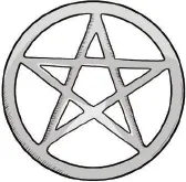 ДИСК С НАЧЕРТАНИЕМ ПЕНТАКЛЯ. Пентакль – пятиконечная звезда, заключенная в круг. Это священный символ в колдовстве. Нижние точки звезды представляют элементы земли, воздуха, огня и воды, а самая верхняя точка – это дух. Круг обозначает бесконечный цикл перерождений. Диски с изображением пентакля могут быть выполнены из дерева или металла, а также сшиты из ткани.