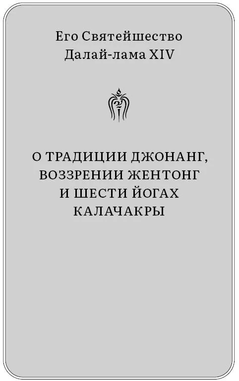 В этой книге такие выдающиеся мастера, как Его Святейшество Далай-лама XIV и Кхентрул Ринпоче, а также исследователи и знатоки Калачакры Майкл Шихи и Эдвард Хеннинг рассказывают о традиции Джонанг и тантре Калачакры. Помимо истории возникновения и распространения тантры Калачакры в Шамбале, Индии и Тибете, читатель познакомится с краткой биографией основных учителей традиции Джонанг Калачакры, а также узнает об основных положениях воззрения традиции Джонанг – великой мадхьямаки – и получит общее объяснение структуры шести ваджрных йог Калачакры. Книга предназначена для широкого круга читателей; в особенности для тех, кто хочет получить достоверную информацию о царе всех тантр – тантре Калачакры.
