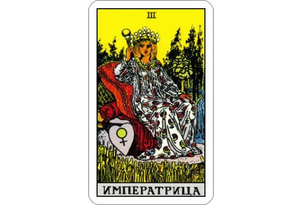 Символика: Творчество, плодородие, материнская забота. Величественная женщина в пышных одеждах, корона и трон украшены цветами и плодами. За спиной сад, плодородные земли.