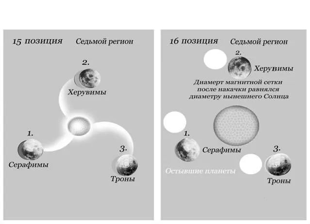 Позиция 17. К этому времени луны отошли от Каркасной сетки. (Все происходящие действия мне показали во сне). По волеизъявлению Отца Бога было вызвано из Восьмого региона Огненное Солнце.