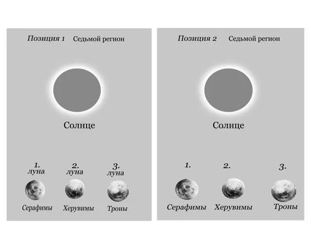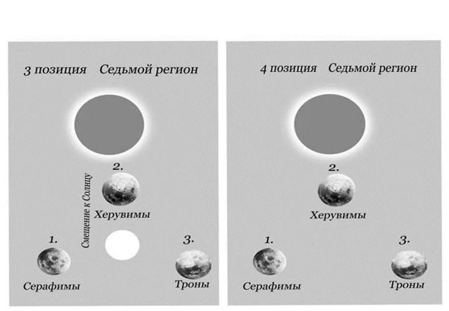 Они заняли такую же позицию, как и прежде в других регионах. Такая же история повторилась в Шестом регионе. Солнце выработало отведенный ей эволюционный ресурс и погасло. Три Луны плавно перешли по очереди, в наш Седьмой регион Метагалактики.