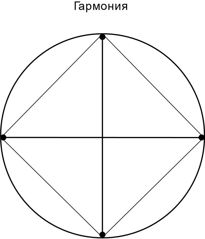 – А теперь представь исполнение Акта Возвращения Блудного Сына, – Учитель взялся за карандаш. – Сын «идет» к Отцу, и Дух автоматически следует туда же, а значит, Триада сжимается в точку, и Гармония имеет следующий вид, – он победоносно сунул под нос Ученику измененную схему: