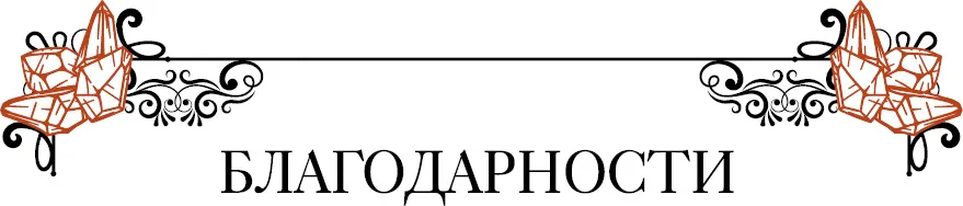 Я бесконечно благодарна Саре Лаундс, непревзойденной шаманке и основательнице центра натуротерапии «Сарепенела» (www.sarpenela.co.uk), которая помогла мне сложить все фрагменты в цельную картину и пробудить кундалини. Спасибо всем моим клиентам и участникам занятий – благодаря вам я столько узнала о чакрах, расширенном сознании и пробуждении кундалини (и их побочных последствиях). Этой книги не было бы без вашей готовности отправиться за мной в неизведанное, изучать новые кристаллы и чакры и исследовать высшие измерения.
