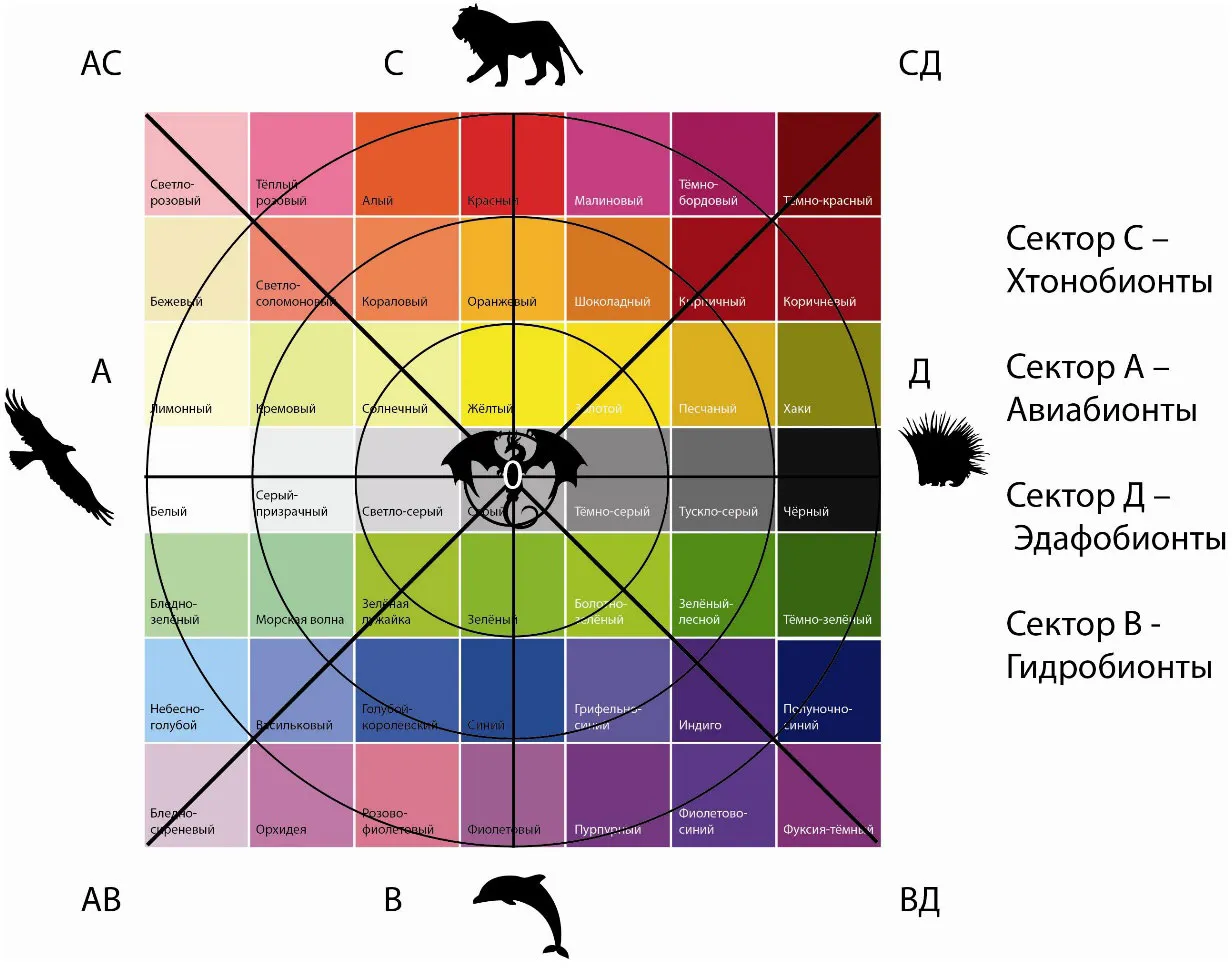 Вот эти качества, которые объединяют цвет, стихии, обитателей этих стихий, временные ритмы и … психические качества Человека: