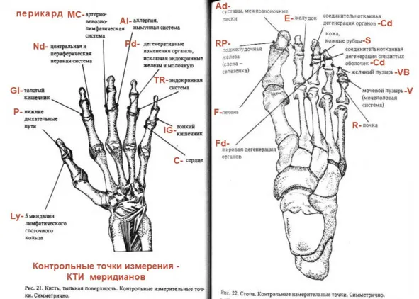Всего-то 20 контрольных точек измерения состояния органов и систем организма. 10 кти на кистях, 10 кти на стопах