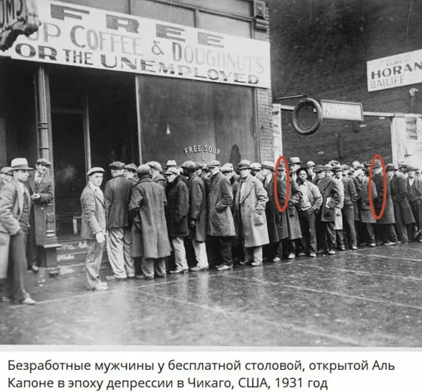 Именно поэтому оказалось, что все в этой очереди 1931 года, имеют поражение ауры и тела, торсионными вихрями эфирного ветра. И только 2 человека, отмеченные на снимке, не имеют торсионных пробоев ауры и тела.