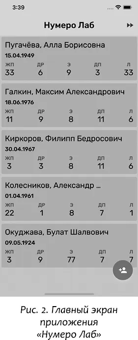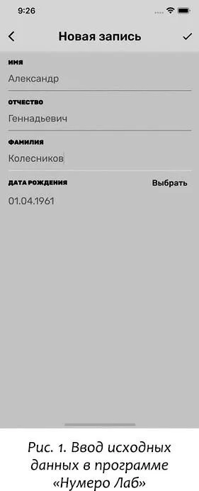 На этом экране параметры нумерологического ядра показаны компактно. Если при вычислении получается Мастер-число, не важно, внешнее или внутреннее, то показано оно. В противном случае показано базовое число. Чтобы увидеть все детали, в том числе кармические числа, прикоснитесь к интересующей вас записи. Результат показан на рис. 3.