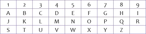 Особенность пифагорейской нумерологии заключается в том, что буквы алфавита нумеруются последовательно, от 1 до 9. Этот подход применим к любому алфавиту – и к русскому, и к английскому, и, скажем, к финскому. Вот, например, таблица числовых соответствий букв английского алфавита.