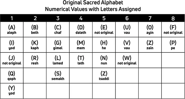 Вы видите таблицу, взятую непосредственно из книги Хиро. Заметьте, что четыре буквы помечены как Not Original – отсутствуют в оригинале. Видимо, Хиро просто предположил, где, по идее, эти буквы могли бы находиться. Интересно, что буквы J и E заняли в итоге те же места, что и в пифагорейской таблице. Заметьте, что число 9 в этом распределении не используют – потому, что как считается, оно является священным.