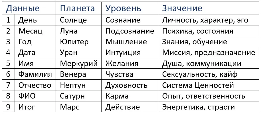 Каждое Число находится под Управлением одной из Планет и отвечает за определённые Уровни (чакры, тонкие тела) и Сферы жизни.