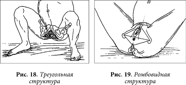 Если посмотреть на костную структуру таза снизу, можно увидеть четыре выступающих части: лобок, копчик и два седалищных бугра. Вместе они составляют четыре угла промежности, как полагают медики, «имеющей форму бриллианта».