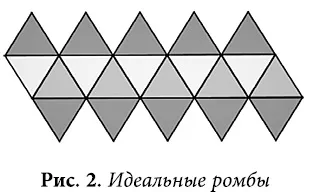 В итоге таких манипуляций осталось только две формы, отвечающие принципу «золотого треугольника» – ромбы с углами 36 градусов и 144 градуса.