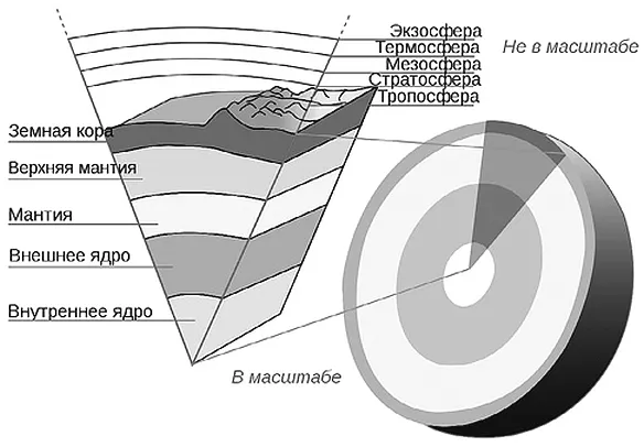 Ту же причину имеет полосатость Земли (начиная от ядра: если заглянуть вовнутрь трещин Земли, то вы увидите на их срезе ее слои (рис. 29)).