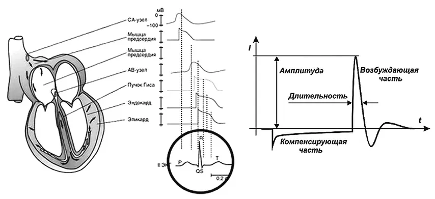 Мы уже говорили во второй книге о солитонах – уединенных волнах. Эти волны идут в перехвате Ранвье и в сердце, на границе двух сред (рис. 34).