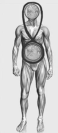 Один из «земных шаров», лежащих в животе, отвечает за сому (за здоровье нашего тела), а второй, находящийся в голове, – за сознание (рис. 7).
