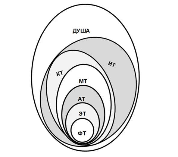 Чтобы легче представлять систему Души – биосистему Человек я напомню вам об очень известной детской игрушке – матрешка. Это модель, очень примитивная, но достаточна для понимания. В биосистеме Человек-Душа, в отличие от матрешки, разделить тела без разрушения самой системы невозможно.