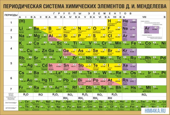 Таблица 1-Периодическая система химических элементов Менделеева