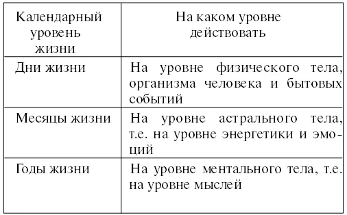 Ответ на вопрос «На каком уровне воздействовать?» имеет всего три варианта в зависимости от календарного уровня жизни. Эти варианты приведены в табл. 3.