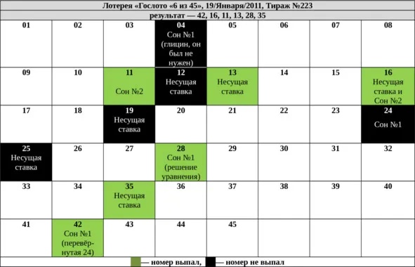 Таблица 1. Соотношение результатов лотереи №223 и сновидений.