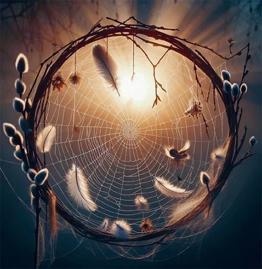 Паучихе было легко заботиться о людях оджибве и оберегать их сон, пока они жили на Черепаховом Острове, но, когда оджибве стали расходиться по всему свету в поисках нового дома, Паучихе стало сложно каждый день развешивать свою паутину над спящими. Потому Нанабозо снова обратился к Асибикаши. Теперь он попросил Паучиху научить Нокомис (бабушек), матерей и сестер племени плести волшебные сети для своих семей. Так она и поступила.