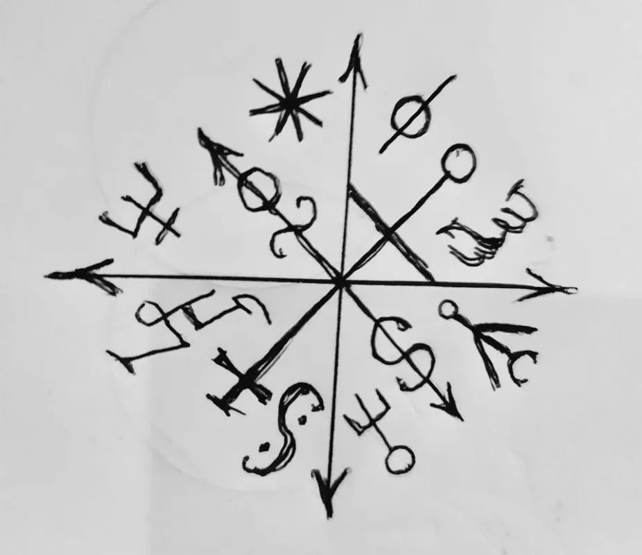 Когда пергамент высох начертайте на нем знак, кисточкой тонким слоем смажьте знак медом и посыпьте на него землю с перекрёстка, в центр положите монетку любого номинала только жёлтую. Аккуратненько сложите знак в треуголку. Можно сверху ещё завернуть чистым листком бумаги, повторяя изгибы.