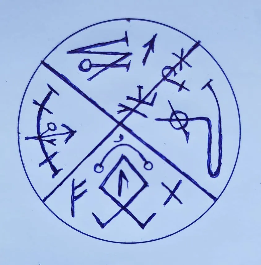 Выкладываем 4 знака на 4 стороны свете по кругу.