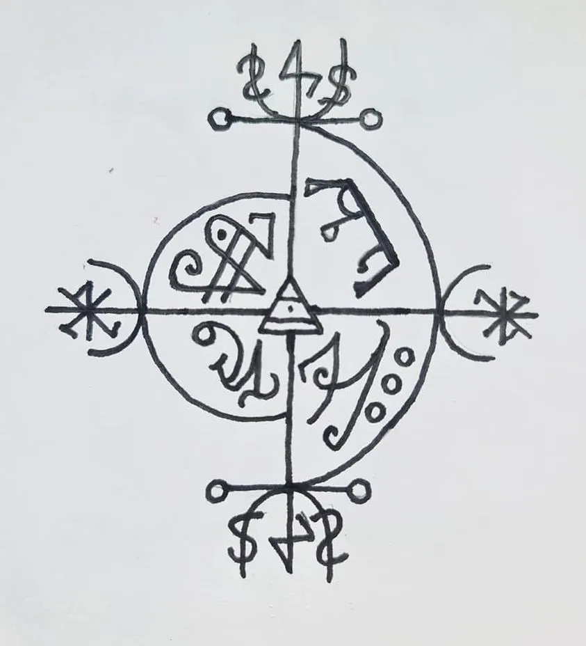 Когда завершите рисовать, положите знак в центр стола. По 4 сторонам поставьте свечи, черные на восток и запад, а белые на север и на юг, возле свечей положите по 1 яйцу и по 13 монет.