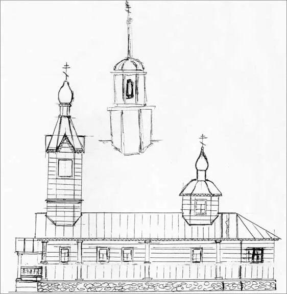 Еще одна главка с купольным верхом возвышалась над алтарной частью. Названная Троицкой по посвящению главного алтаря, церковь имела теплый придел в честь Свт. Николая Чудотворца. До закрытия церкви в ней сохранялся антиминс Троицкого престола, освященный в 1839 г. и подписанный митрополитом Серафимом. Стараниями церковного причта и прихожан в приходе были устроены школы при самой церкви и в деревнях Запишенье, Мерево, Поддубье. Позже в Мереве была устроена земская школа.