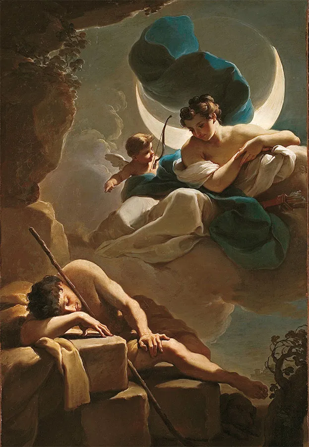 Убальдо Гандольфи. Селена и Эндимион. Ок. 1770. США, Музей искусств округа Лос-Анджелес. Богиня Луны, очарованная Эндимионом, погружает его в вечный сон, чтобы сохранить красоту юноши
