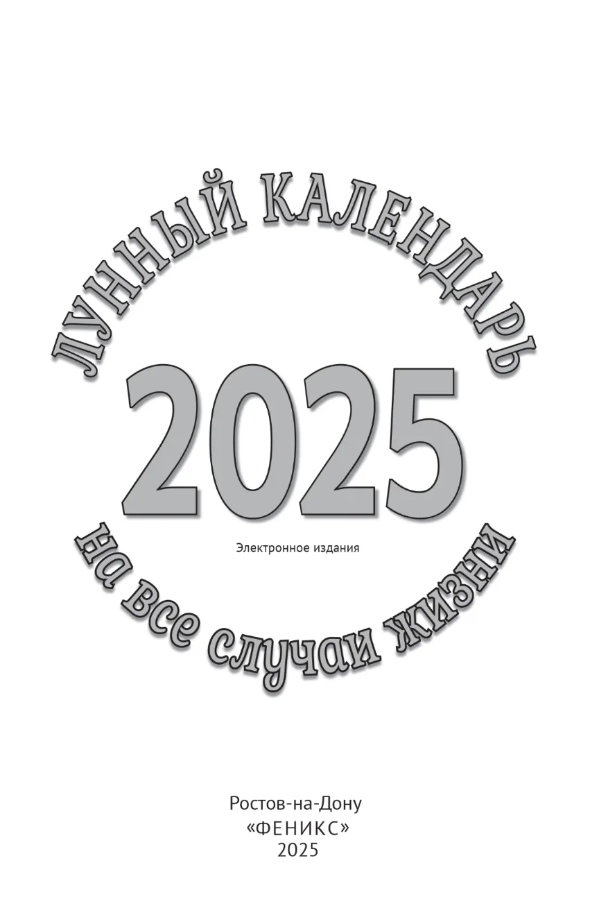 В разделах книги представлены основные характеристики лунных дней, рассмотрено влияние Луны на здоровье, бизнес, повседневные дела, романтические знакомства и приключения и даны рекомендации, как действовать наиболее эффективно. Для практического удобства читателей календарь снабжен ежедневным справочником, где указаны лунные даты на весь 2025 год.