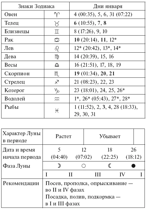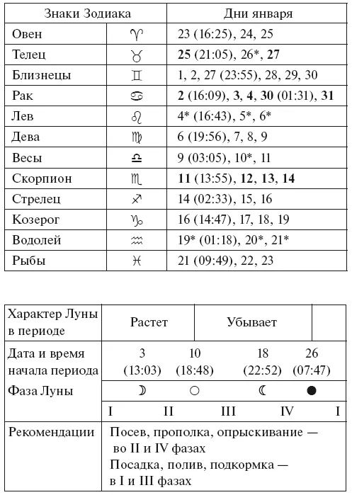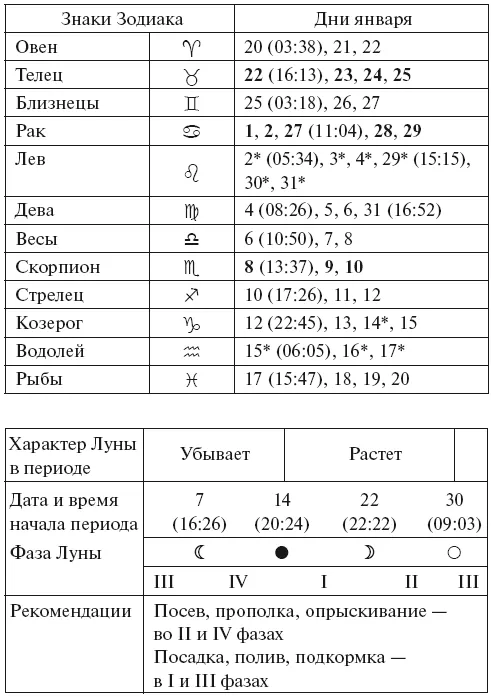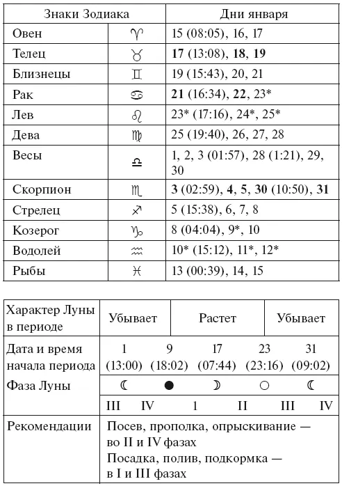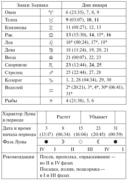 Прохождение Луной знаков Зодиака в январе с 2026 по 2035 годы