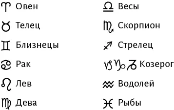 Имея дело с астрологией, полезно знать символы, используемые для знаков зодиака, поскольку они встречаются повсеместно в астрологических книгах и справочниках. Эти символы указаны на рисунке 6, постарайтесь запомнить их.