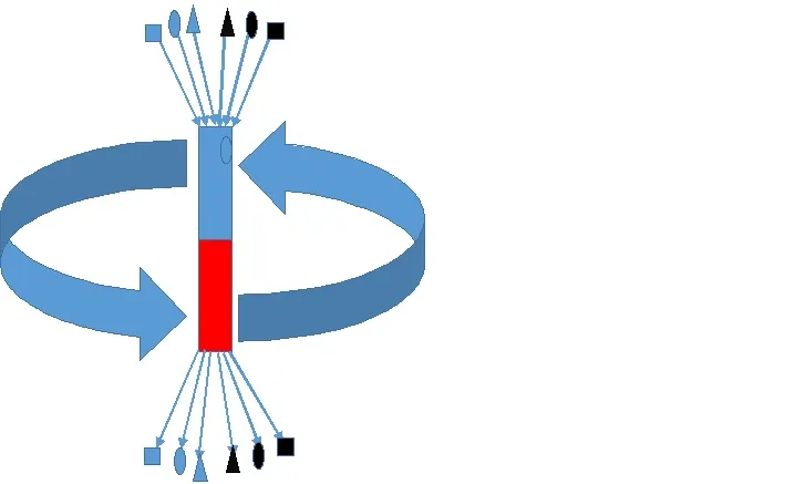 Из нашего «внутреннего магнита» выходят шесть «силовых линий». Две крайние вверху позволяют нам воплотиться в «пустотную» половину мира, в котором мы живем, не только в пространственную, но и во временную структуру. Получить полную информацию обо всем, что в нем происходит. Они блокируются двумя «бляшками» – «полезное» – квадратик синего цвета и «бесполезное» – квадратик черного цвета.