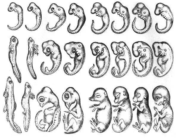 Некоторые этапы узнаваемы – «рыба», «птица», «черепаха» и так далее. Некоторые распознать сложно – но все это формы, которые мы принимали когда-то. И которые на матричном уровне сохраняются в нас, обеспечивая, например, врожденное умение плавать. Наличие рудиментов – многососковость, хвост и прочие «отклонения». Но хромосомы связаны не только с прошлым, но и с будущим – они определяют происходящие во времени изменения нашего нынешнего тела. Все растут, у некоторых меняется цвет глаз, некоторые рано лысеют, некоторые болеют наследственными болезнями и так далее. Зародыши «физического будущего» уже есть внутри каждого из нас.