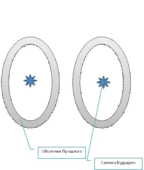 Так происходит и во всех остальных случаях. Несовершенный Узор – незавершенное или незаконченное действие образует неустойчивую «оболочку прошлого». В центре которой возникает «семя будущего», необходимое для стабилизации этой оболочки. При движении волны Времени некоторые «семена» прорастают и становятся настоящим. Но здесь возможны два варианта – в первом случае «семя» растет внутри оболочки, не прикасаясь к ней. Как когда мы возвращаемся домой, чтобы проверить – выключен ли утюг. Рост «семени» приводит к уменьшению напряженности и к стабилизации «оболочки прошлого» – на какой-то период времени мы перестаем её замечать. Но сама «несовершенная оболочка» сохраняется и вновь воплощается в Настоящее – мы опять «забываем» – выключили ли мы утюг. И нам вновь приходится возвращаться. Так и образуются устойчивые бессмысленные ритуалы, заполняющие большую часть нашей жизни.