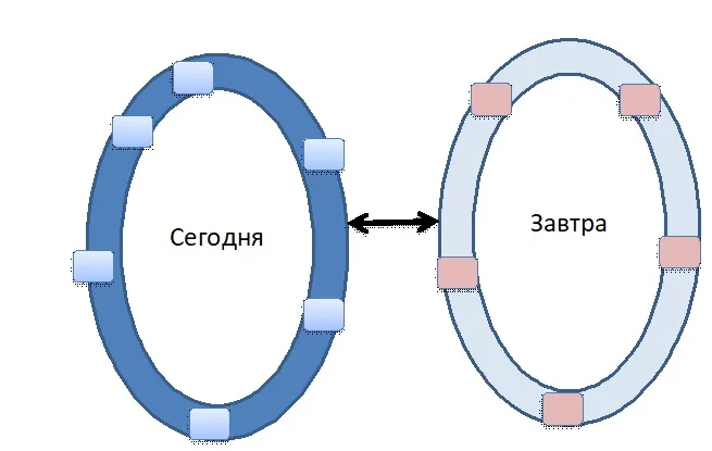 Мы говорили о том, что слова, вернее наши «мыслеформы» обладают различной плотностью, различной «тяжестью». Чем они легче, тем на более высокий уровень они поднимаются, а чем тяжелее, тем проще им опуститься. В данном случае в Настоящее. В принципе мы это знаем – многие решения, относящиеся к будущему, мы все-таки выполняем. Потому, что они по каким-то причинам оказались «тяжелее» других. Но механизмы, действующие здесь, нам непонятны, поэтому и осуществленные решения нередко оказываются половинчатыми. Как и результат их осуществления.