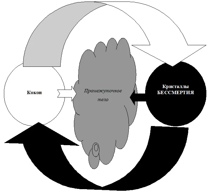 С этой точки зрения «промежуточное» тело, которое и является основой нашего «рельефного» тела, связывающего матрицы между собой, становится барьером, отгораживающим нас от любого из уровней реальности. Для того чтобы войти с ним в резонанс, принять такую форму кокона, которая позволяет нам воспринимать его и действовать на нём, а тем более – обрести физическую форму, соответствующую этому уровню, необходимо сконцентрировать на его матрице всю нашу энергию, или хотя бы – больше половины заключенной в нас энергии. А мы не можем этого сделать, так как большая часть нашей Силы уже сосредоточена в «рельефном» теле и неподвластна нам. Это и есть вторая проблема, связанная с развитием «рельефного» (причинного) тела человека. И она нам хорошо знакома. Чем в большей степени мы становимся независимей от реальности, тем слабее мы можем соприкасаться с ней, тем меньше энергии мы можем получать от неё и вообще воздействовать на происходящие в ней процессы.