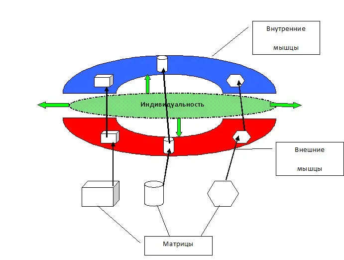 Но формирование правильной Картины мира – это только первый этап. Для того чтобы СИЛА смогла выйти наружу, необходимо избавиться от МАТРИЦ, заложенных в структурах нашего физического тела и ограничивающих его движения. СИЛА может высвобождаться, только когда движения тела обретают правильную, НЕИСКАЖЕННУЮ форму, которая соответствует нашей ИНДИВИДУАЛЬНОСТИ. А пока «личинки» матриц заполняют всю мышечную ткань нашего тела это невозможно.