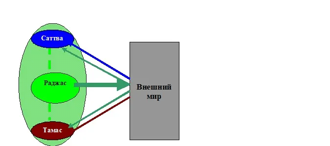 Но очень скоро равновесие нарушается – мы начинаем получать ЗНАНИЕ от других людей, расщепляя свою СИЛУ изнутри и извлекая из неё необходимые нам саттивичные элементы. В результате высвобождаются и элементы Тамаса, которые сами по себе складываются в неосознаваемые и невидимые нам «кирпичики», образующие встроенные в нас правила матриц. В результате наше «сознание» и наше «бытие» входят во все большее противоречие друг с другом, и чтобы научиться не замечать его, нам приходится принять правило устойчивости и неизменности мира, его независимости от нас.