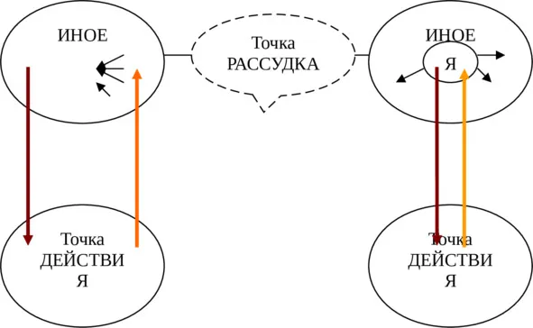 Забегая вперёд, скажу, что наша точка РАССУДКА, КАРТИНА МИРА делится на две неравные части: «я» и противостоящее нам ИНОЕ. Любое действие, которое мы совершаем в этой точке, может исходить или из нашего «я» – когда мы делаем что-то, что нам НЕПОСРЕДСТВЕННО интересно, или из ИНОГО – когда мы делаем что-то только потому, что от нас этого ТРЕБУЮТ. В первом случае главным результатом действия становится усиление нашего «я», а во втором – его ослабление.