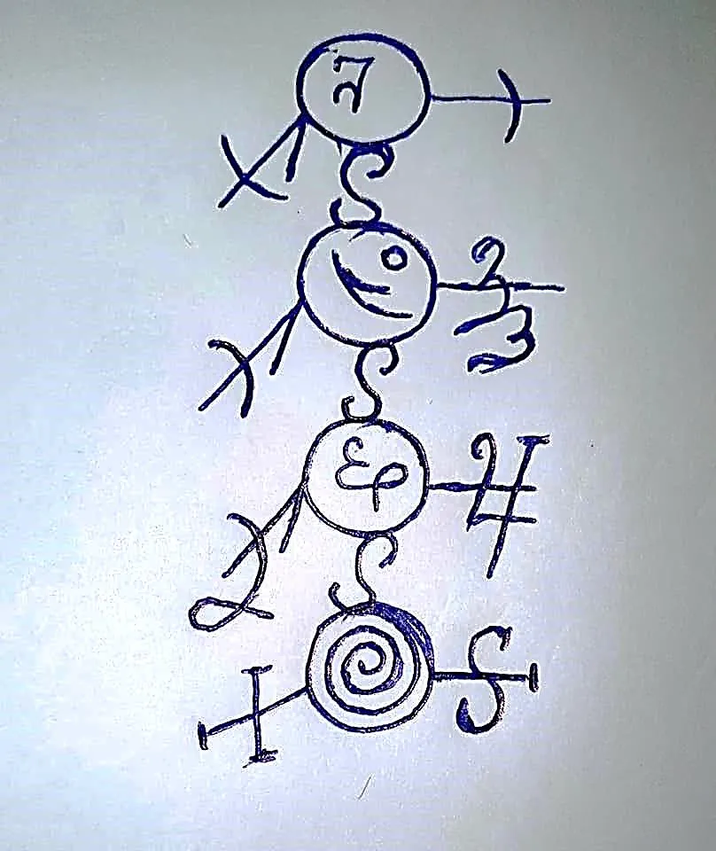 Засыпьте горшочек огородной землёй, посыпьте ее землей с рынка, и землей с перекрестка. Положите по центру нарисованный знак, посыпьте горстью пшеницы и присыпьте землей. Теперь по часовой стрелке ребрышками монет образуйте спираль.