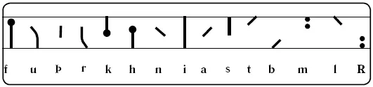 Самыми распространенными вариантами новоявленного футарка являются шведско-норвежские (рис. 11) и датские руны (рис. 12).