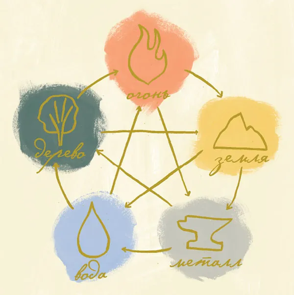 В фэншуй есть три ключевых элемента: стихии, ци (в переводе «энергия» или «жизненная сила», по сути то же, что и прана, которую мы вспомним далее) и восемь триграмм (своеобразная схема твоего пространства, на которой обозначены зоны изобилия, карьеры, семьи и т. д. – всего, к чему мы стремимся на протяжении жизни).