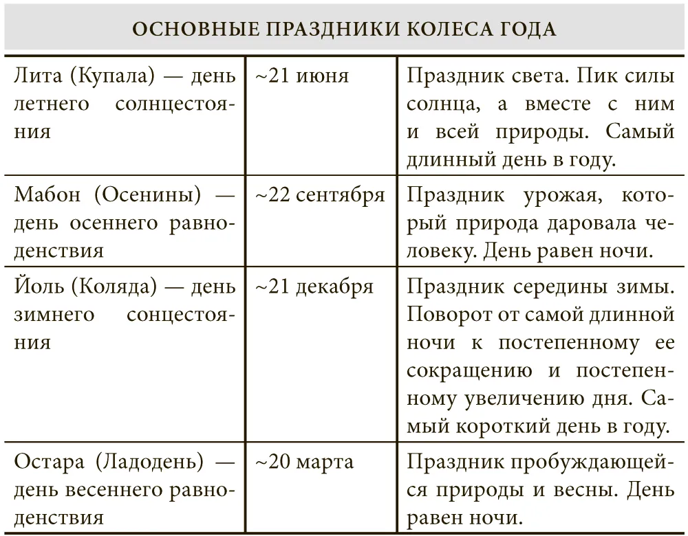 Праздники Колеса года совпадают с неизменными астрологическими событиями, и именно их отмечали наши предки. Они понимали, что зависят от ритмов природы, поэтому приносили часть своего урожая как подношение духам природы. Свечи и травы сжигали на алтарях божеств и природных Духов, а также изготавливали из трав обереги, амулеты и магические снадобья.