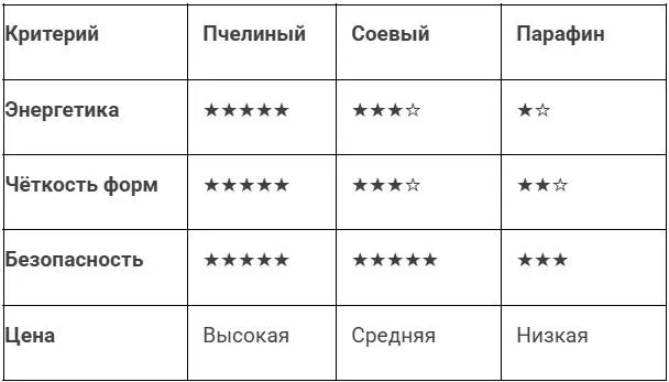 Начните с пчелиного воска для серьёзных ритуалов и соевого – для тренировки. Парафин оставьте на крайний случай.