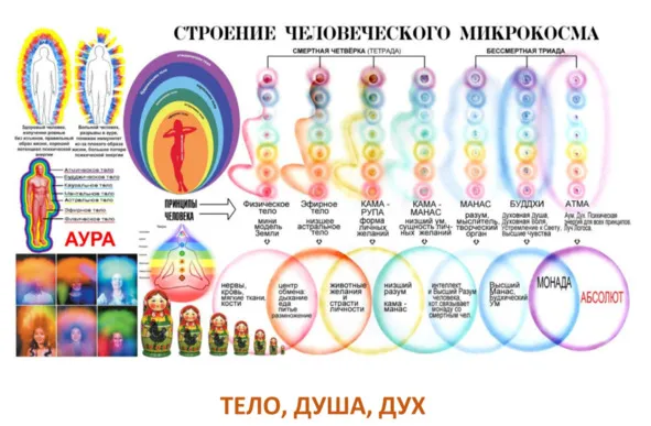 Далее следует пятый принцип – Манас – самосознание, или мыслитель (Высший Разум). И эти три (7-й, 6-й, 5-й) принципа составляют высшую триаду или уже сознательное бессмертное Эго человека, которое после смерти физического тела продолжает своё существование в Дэвачане48 (период между земными воплощениями) после распадения принципов, составлявших его земную личность или его НИЗШЕЕ эго. Так, в Учении именно это высшее Эго, эта триада часто обозначается как Дух или духовное начало, не имеющее самостоятельного НЕПОСРЕДСТВЕННОГО проявления на Земле. Для проявления эта триада нуждается в четвёртом принципе. Так, человеческая душа должна включать четвёртый принцип, называемый Кама, через который проявляется ЖЕЛАНИЕ, в двух аспектах, как Кама-Манас (ментальность, или низший ум, интеллект либо в буквальном переводе «ум желаний») и Форма49 (субъективная форма ментальных и физических желаний и мыслей). Это ЕСТЬ МЫСЛИТЕЛЬ в ДЕЙСТВИИ, в связи с Манасом (высшим) и Буддхи образующий высшее тонкое тело, или ДУХОВНУЮ ДУШУ духовно развитого человека.