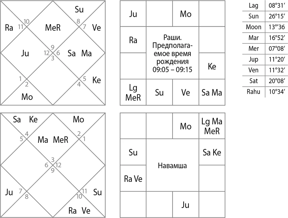 Итак, лагна вимшамши определена, а с ней и время рождения: 9.13 с интервалом 1 минута (см. рис. 23).
