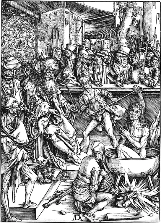 Мученичество Иоанна Богослова. Из серии гравюр «Апокалипсис». Художник Альбрехт Дюрер